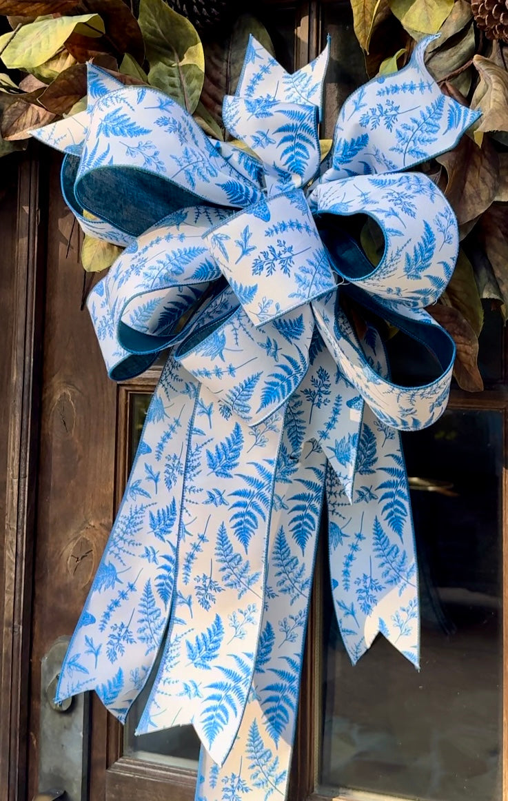 Blue fern bow. Some fluffing maybe required after receiving it.