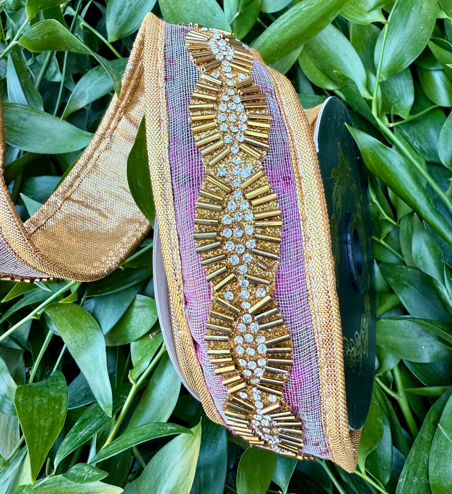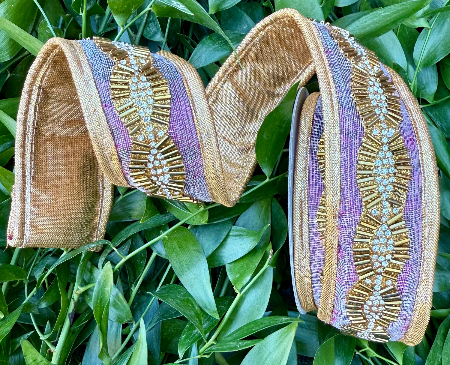 JME Gold Bead Trim red adjacent with Gold Metallic Back Ribbon 1.5"x5YD