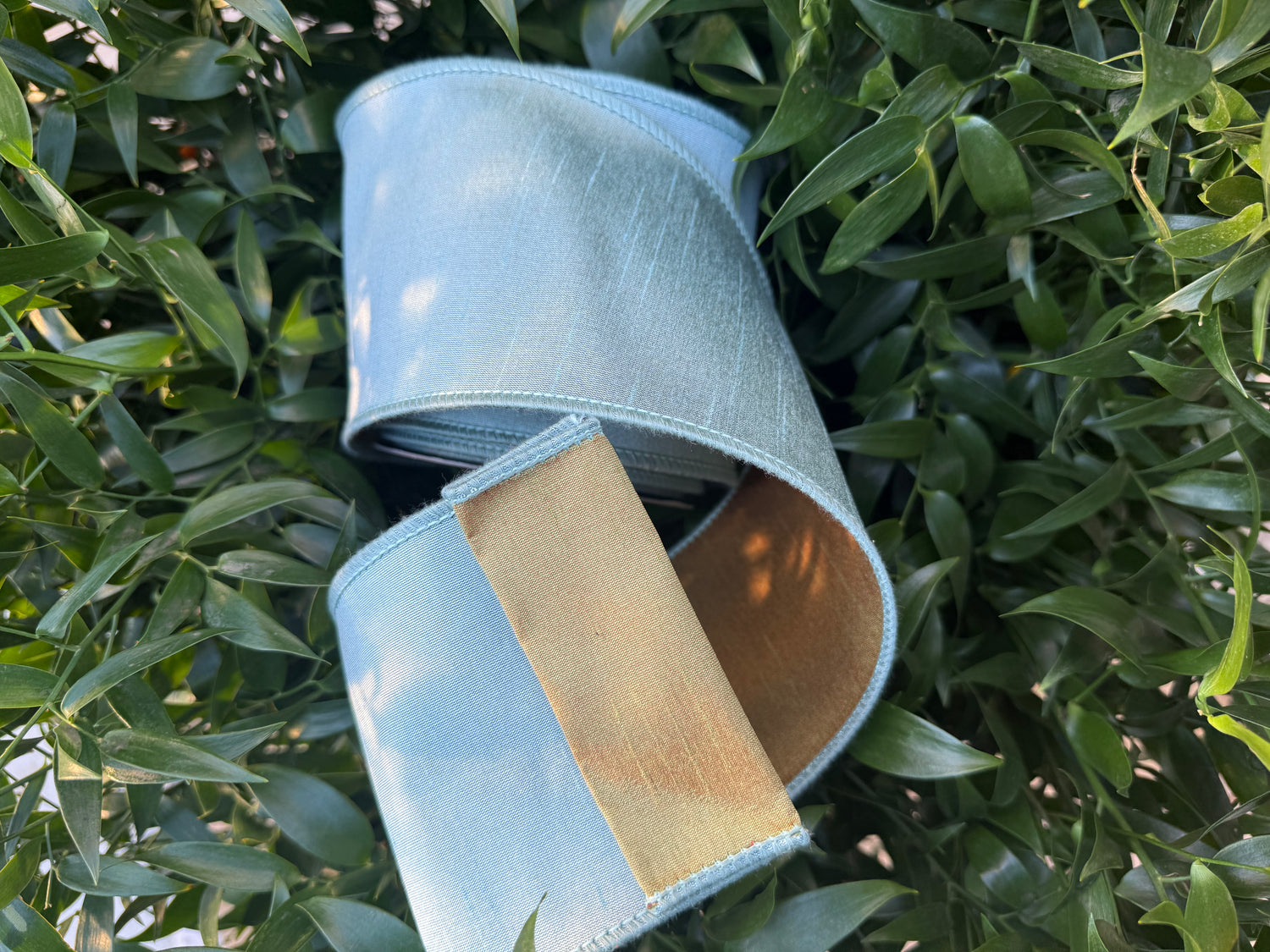 JME heavy wired ribbon. AQUA/ANTIQUE GOLD Two-Tone Solid 4"x 10YDS