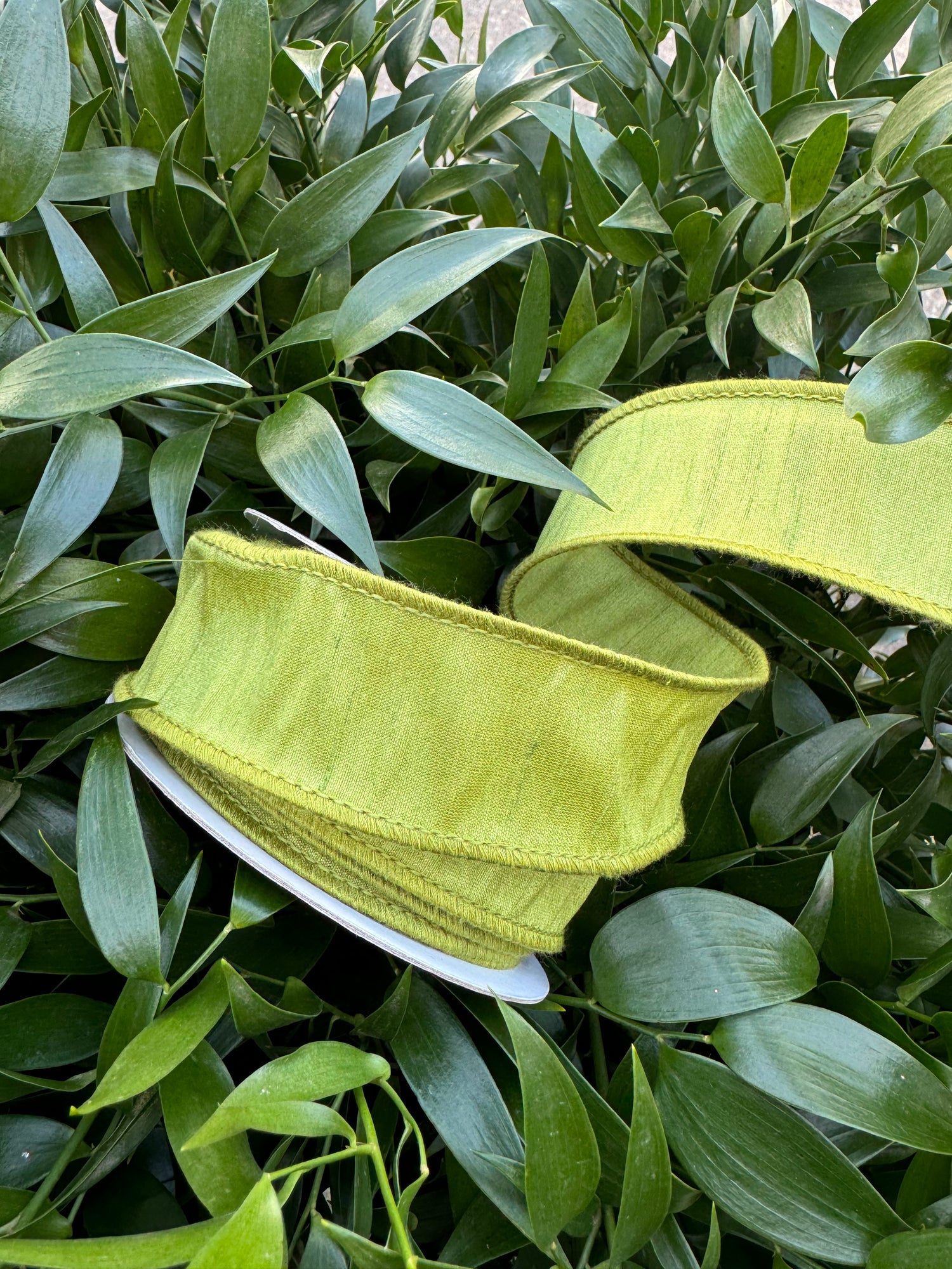 JME heavy wired ribbon. MOSS GREEN Dupion 1.5"x 10YDS