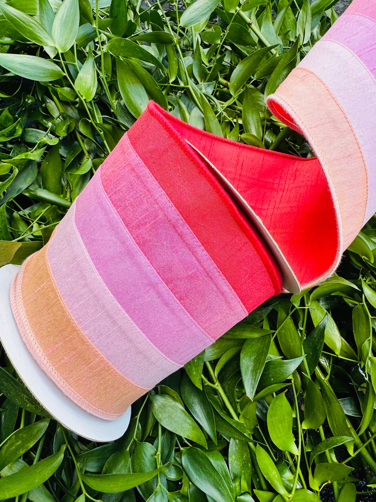 JME heavy wired ribbon. PINK Stitched Stripes Dupion 5"x 10YDS