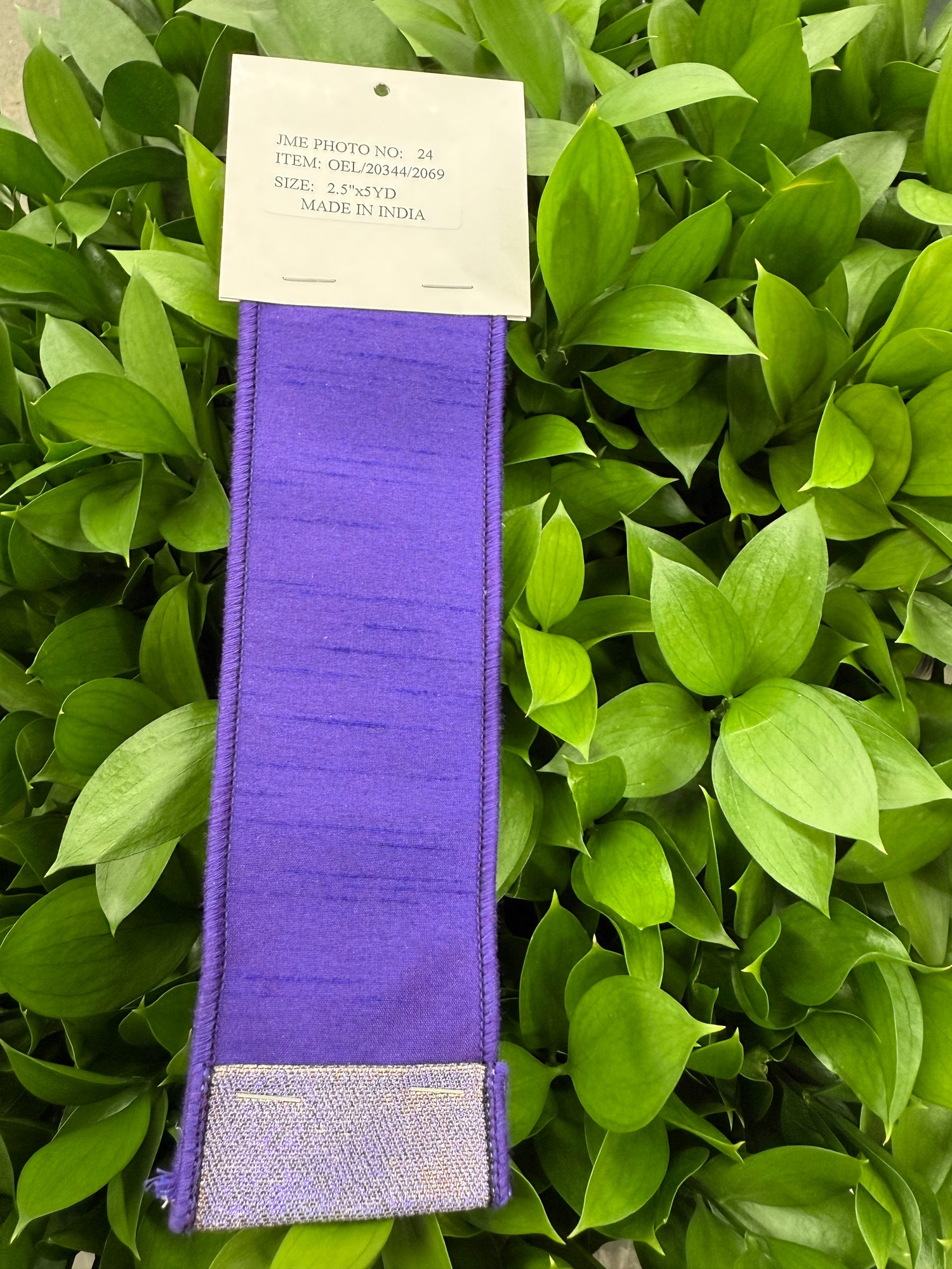 JME heavy wired ribbon. PURPLE Dupion with Purple/Gold Metallic Back