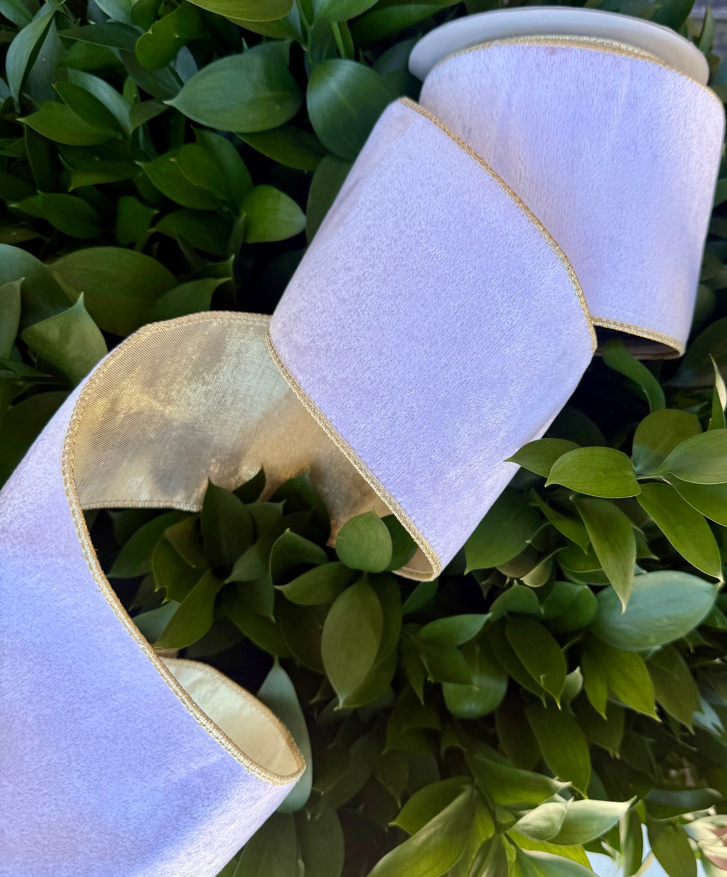 JME heavy wired ribbon. WHITE Velvet with Metallic Gold Back