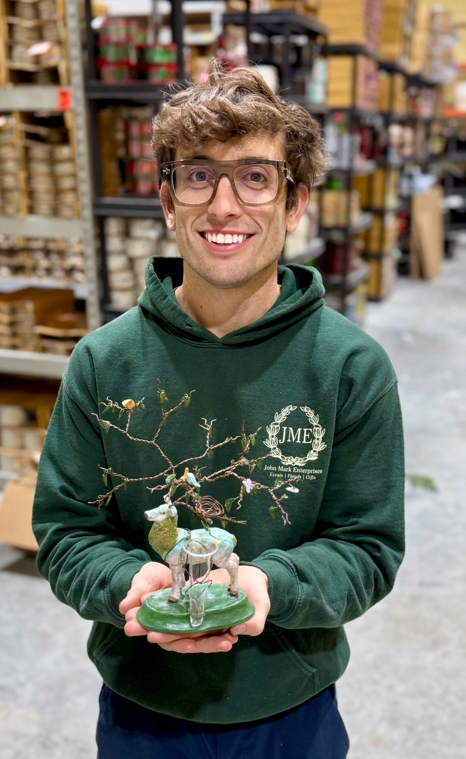 Unique bud vase holder. Deer with birds and leaf antlers. Handmade. About 10 inches tall.